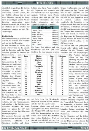 Der Flying Ace (FA) war (und ist) das offizielle Fan-Magazin des deutschen Wing Commander Rollenspiels, das über viele Jahre hinweg von Spielern für Spieler erstellt wurde. Die Publikation umfasste Missionsberichte, Hintergrundartikel, Charakterportraits, Technik-Dossiers, Staffelstatistiken, sowie humorvolle Beiträge und fiktive In-Universe-Nachrichten aus der Perspektive der Terranischen Konföderation.